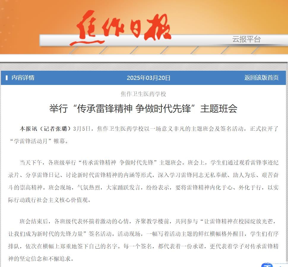 《焦作日报》:传承雷锋精神 争做时代先锋[17/04]