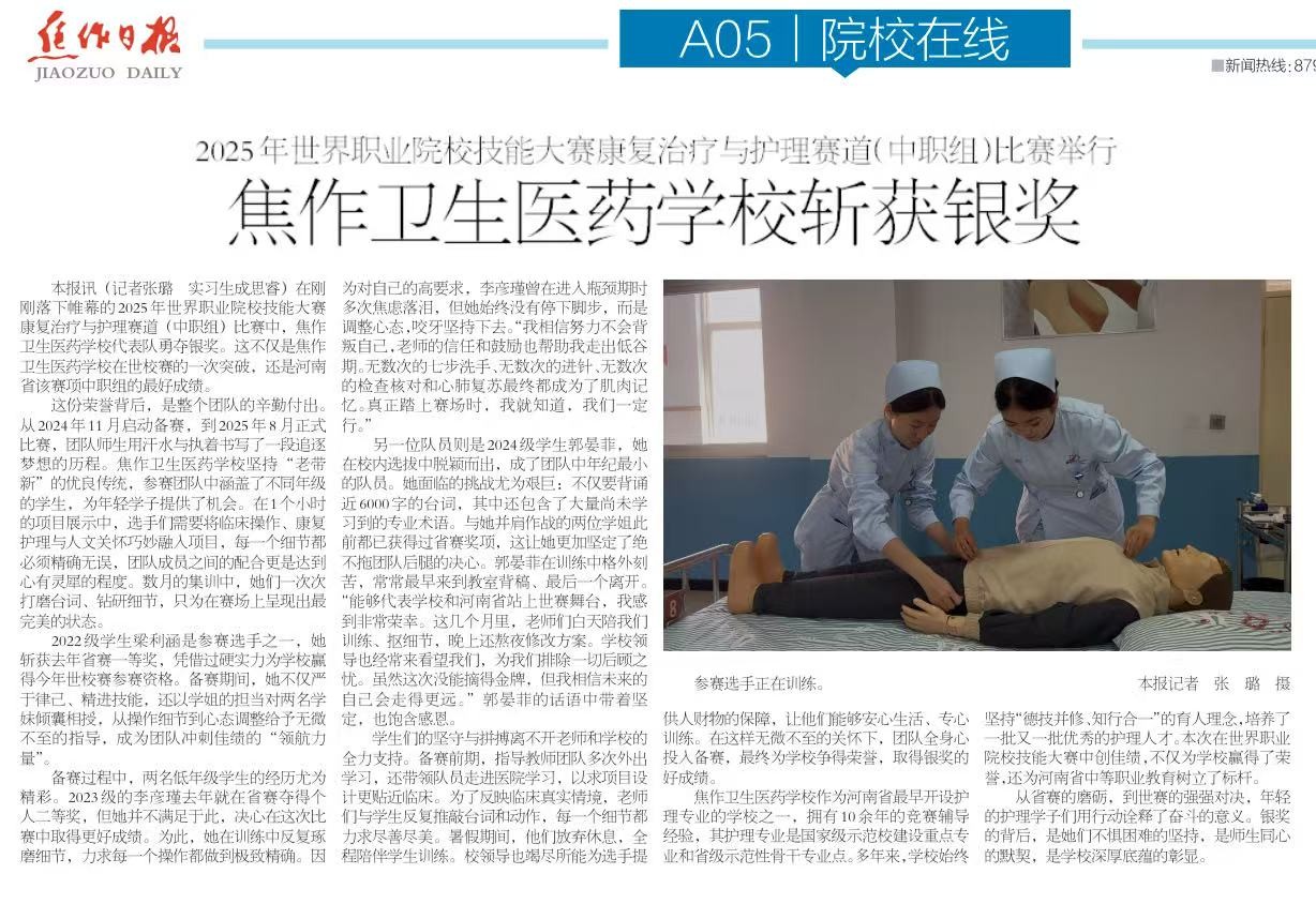 从省赛的磨砺,到世赛的强强对决,年轻的护理学子们用行动诠释了奋斗的意义。银奖的背后,是大家不惧困难的坚持,是师生同心的默契,是学校深厚底蕴的彰显。